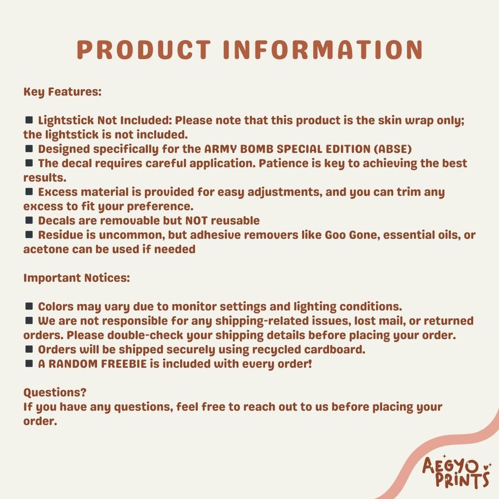 ◾️Lightstick Not Included: Please note that this product is the skin wrap only; the lightstick is not included.